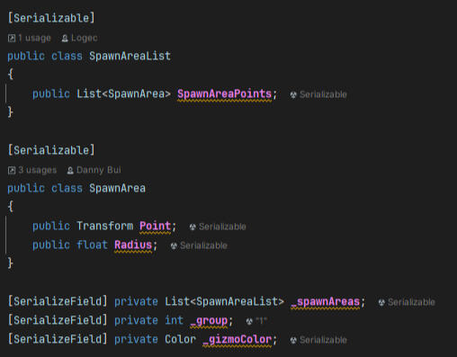 There was an aspect of the project where we'd have to set spawn points for the items to spawn from. Setting them out with different at different sizes would not only be tedious without being able to see the radius would not only be tedious, but would also be prone to mistakes where the items could spawn outside of the play area.So I made sure that you could see the spawn areas in the editor so you could change them around without having to do that in play mode, which would also remove the changes made there as soon as you stopped it.